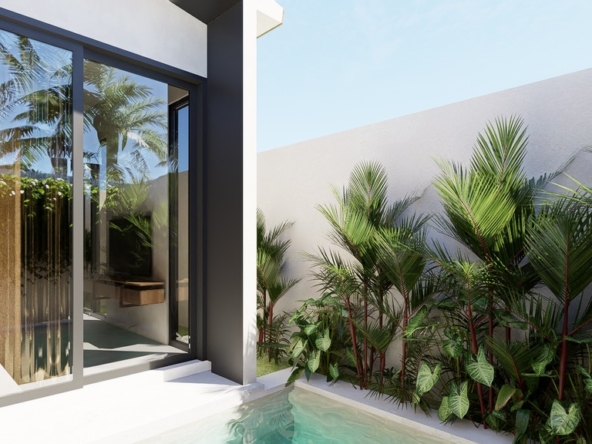 This sophisticated one-bedroom villa, spanning two levels, is nestled in the highly desirable Uluwatu area, just steps from the renowned Mana and Uluwatu Surf Villas. The ground floor features a bright, open-plan kitchen and living area, thoughtfully designed for effortless flow and relaxation. Expansive windows bathe the space in natural light, offering picturesque views of your private pool and inviting seating area.