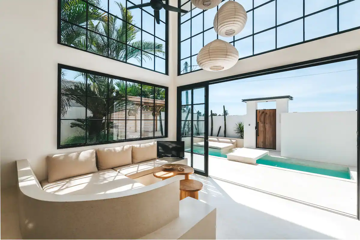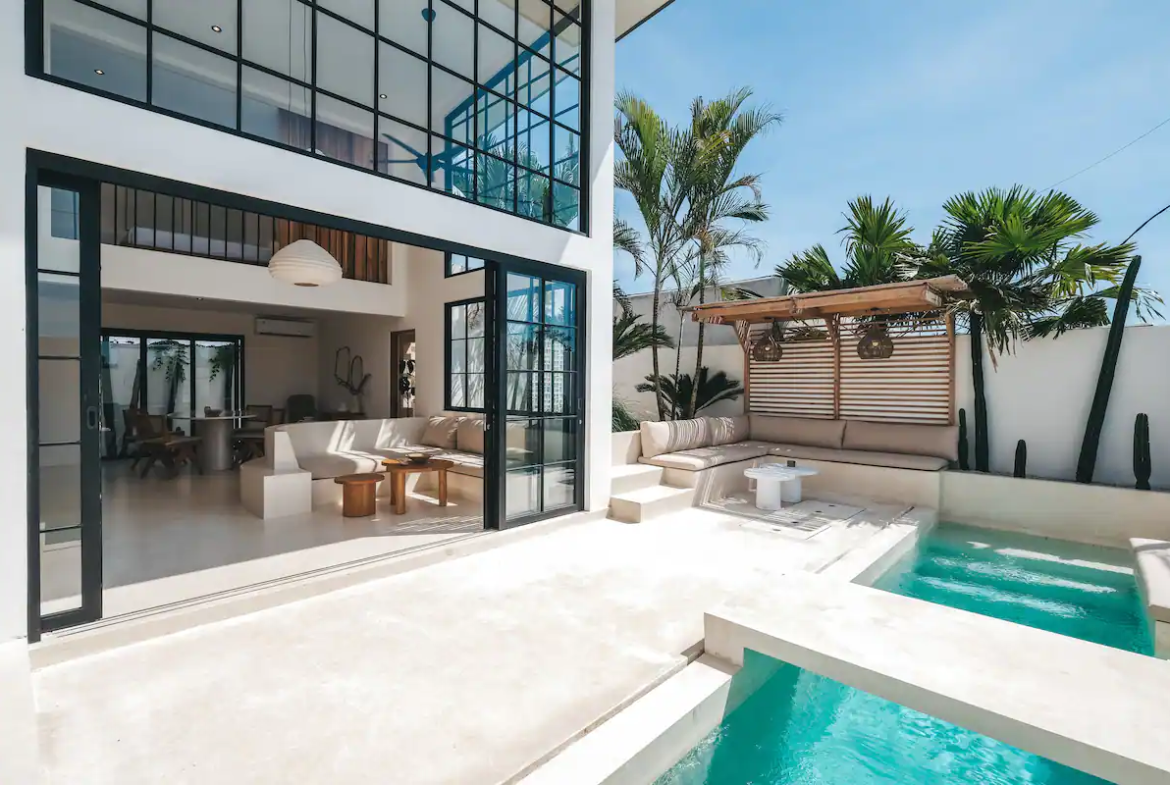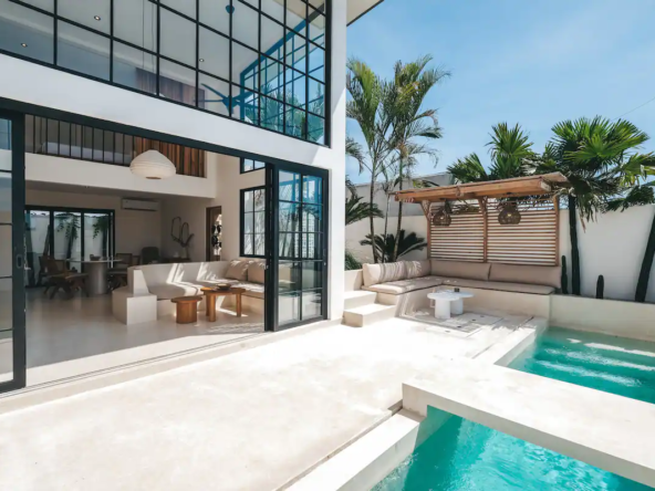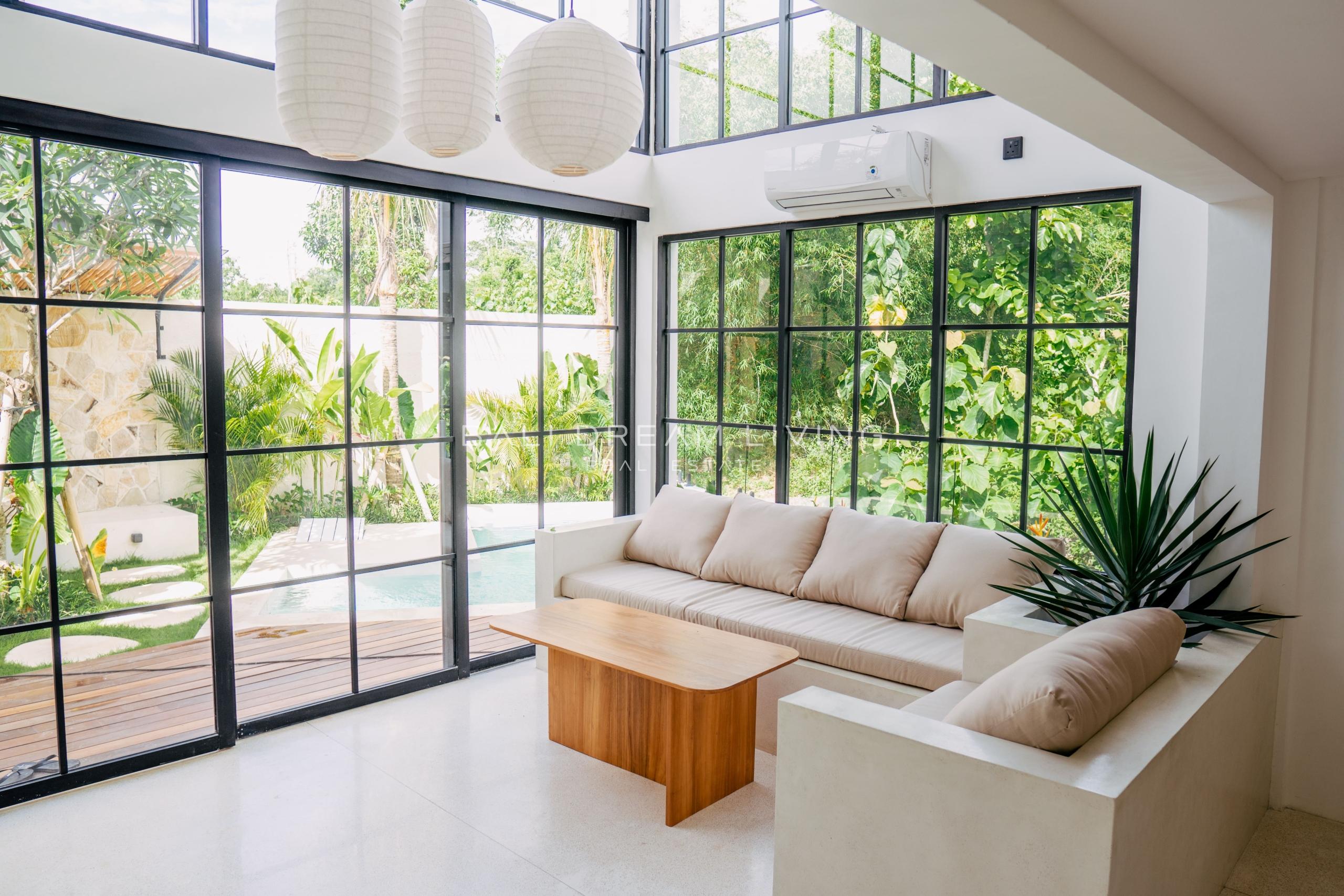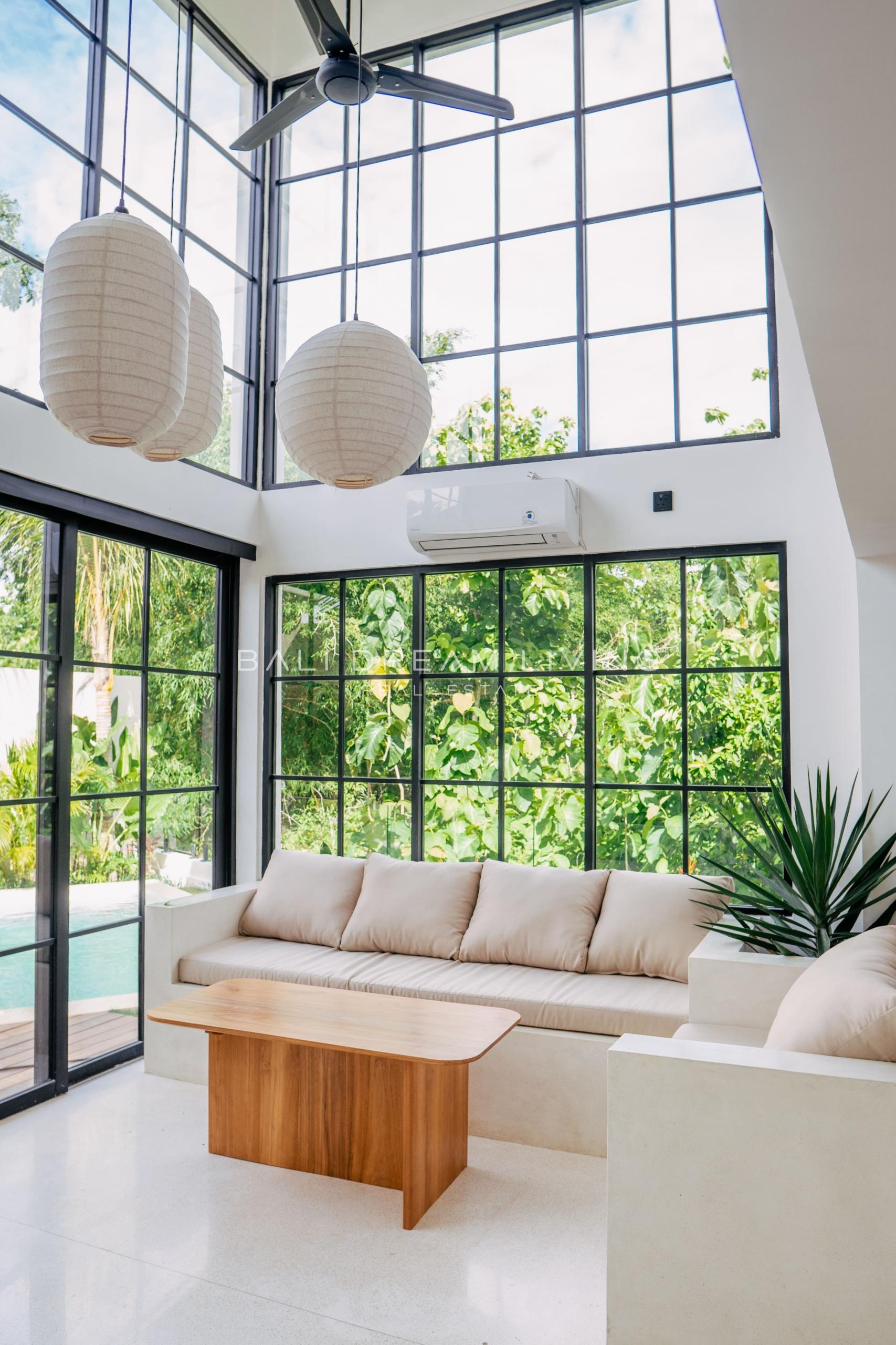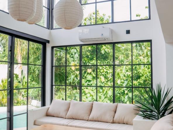 Discover a contemporary two-storey villa set in the peaceful residential pocket of Balangan, just minutes from the beach. Designed with clean modern lines and a strong sense of privacy, the home features an enclosed living area that creates a comfortable retreat while framing tranquil jungle views. The layout is thoughtfully arranged to separate the living and sleeping zones, giving the villa a calm, well-balanced feel, while the private swimming pool adds an easy tropical lifestyle element.
