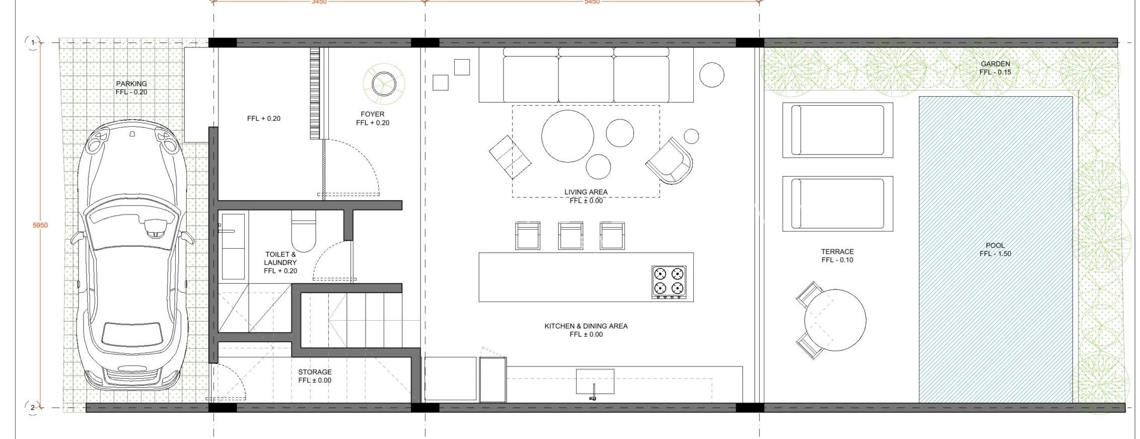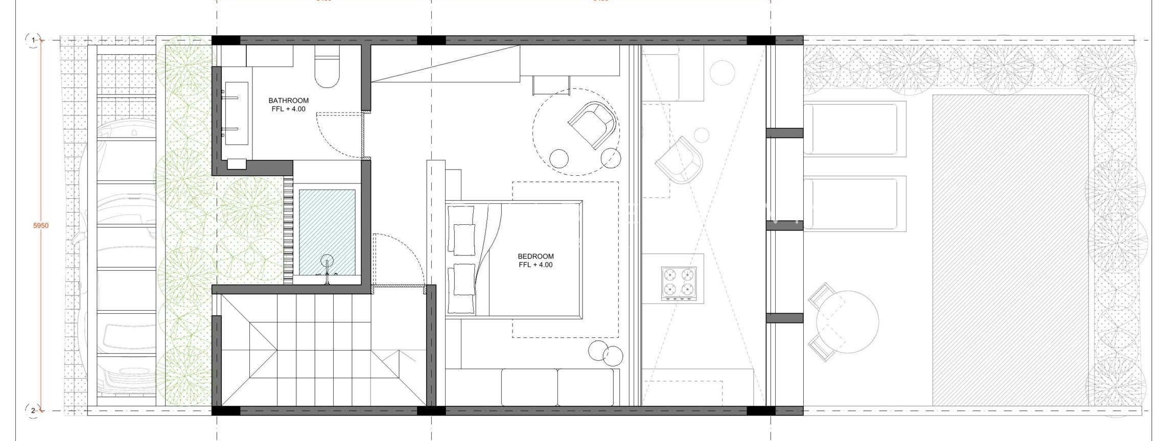 Ascending to the second level, you’ll find a fully enclosed studio bedroom, complete with an en-suite bathroom featuring a luxurious bathtub. The rooftop access offers an ideal space for sunbathing or enjoying breathtaking sunsets. For those seeking an extra touch of luxury, the rooftop can be enhanced with our premium design package, transforming it into the perfect venue for hosting friends, family, or special events. Relax with a glass of wine as you watch the sun dip below the skyline, making this villa the ultimate sanctuary for refined living.