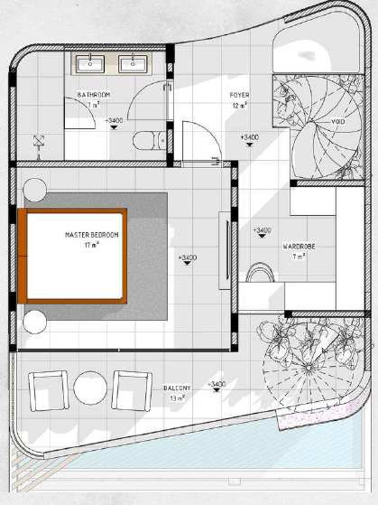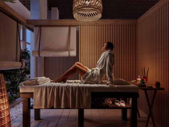 Residents also enjoy access to well-designed shared facilities, including a refined dining area, rooftop lounge with fire-pit seating, fully equipped gym, wellness and spa facilities, yoga spaces, and a private cinema.
