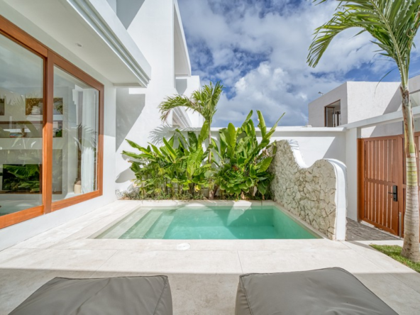 Each villa is set on a private plot of 100–110 sqm with a 100 sqm interior, arranged across two thoughtfully planned floors. The villa features two spacious bedrooms with luxury ensuite bathrooms, a sunken lounge, open-concept living and dining area, a fully equipped kitchen, and designer finishes throughout. Outdoor living is elevated with a private pool, balcony, and dedicated parking, while additional amenities include a guest toilet and storage room. Every villa is delivered fully furnished and turnkey, ready for immediate occupancy or rental operation.