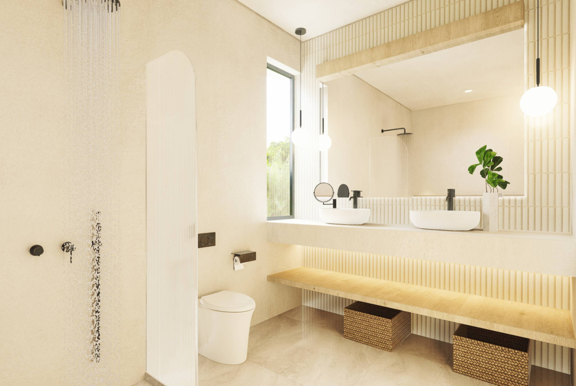 The villas offer two spacious ensuite bedrooms, elegant bathrooms, and generous living and dining spaces arranged across two levels. With build sizes of 143 m² and plots ranging from 1.5 to 1.8 are, each home balances comfort with contemporary design, while balconies and outdoor spaces provide additional opportunities to enjoy Bali’s year-round sunshine.