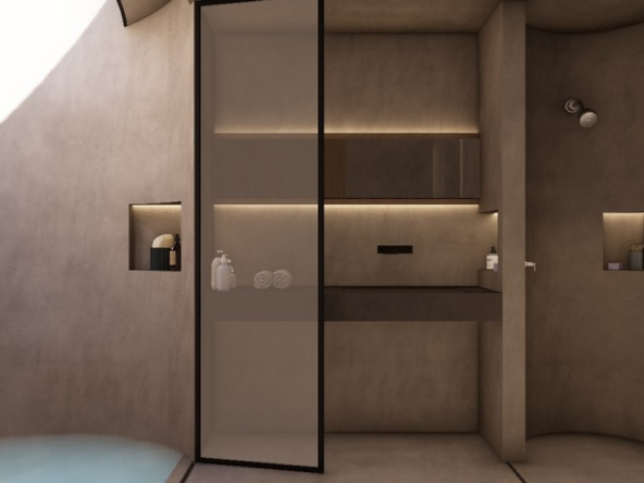 The villa’s private swimming pool—enhanced with advanced filtration and smart lighting—is elegantly sheltered beneath a glass greenhouse-style roof, creating a tranquil ambiance for early morning swims or peaceful evenings beneath the stars.