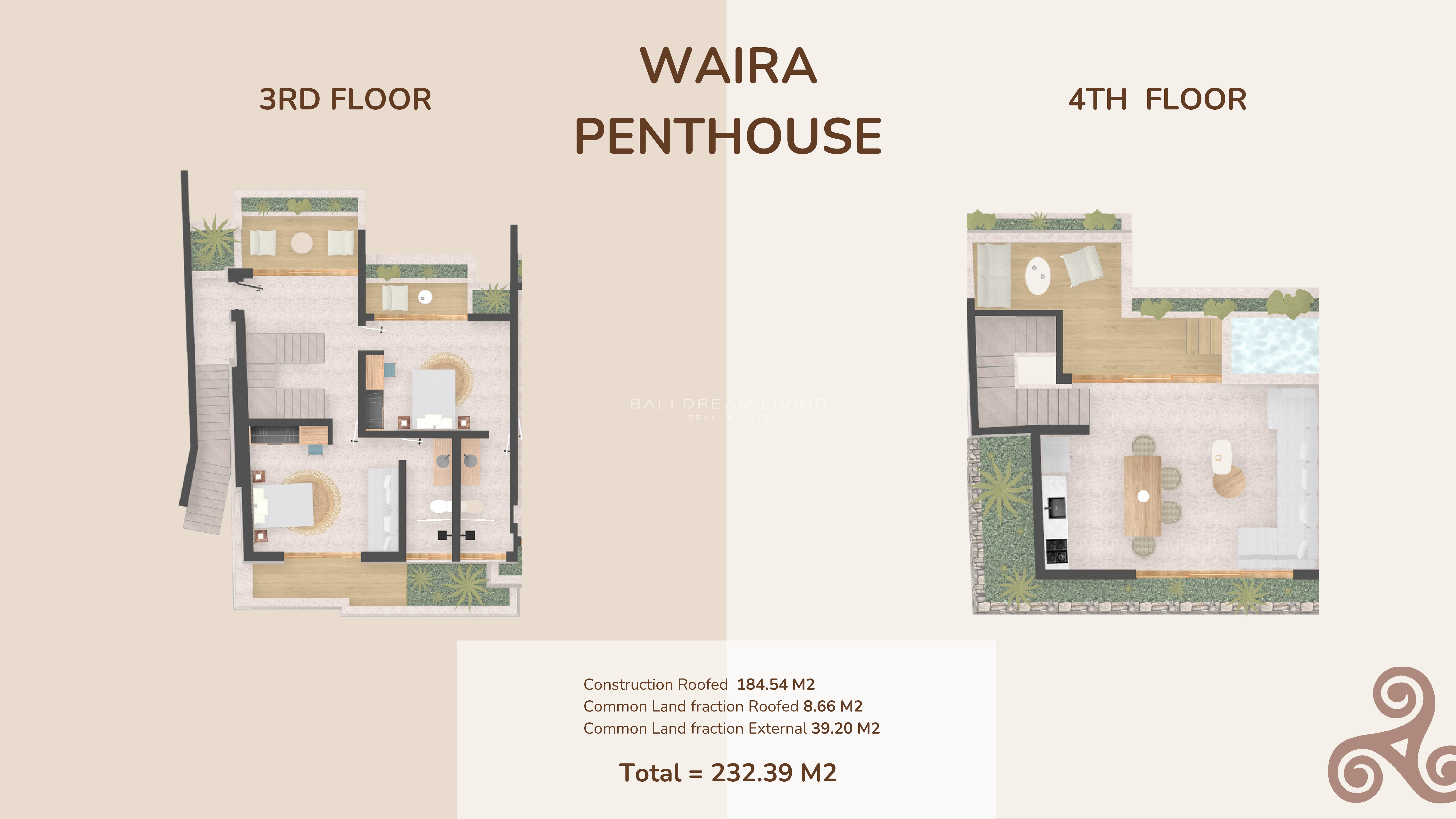 Inside, two spacious bathrooms complement the tastefully decorated bedrooms, creating a comfortable and sophisticated ambiance. With 24/7 security, parking, and dedicated staff, Waira Penthouse offers the ultimate Balinese getaway.