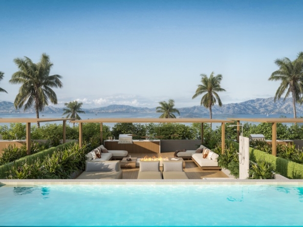 Discover elevated coastal living in this stunning two-bedroom villa, where contemporary design meets breathtaking natural beauty. This remarkable home boasts a private rooftop pool with sweeping ocean views, creating a tranquil retreat high above the lush surroundings. Inside, two generously sized bedrooms with en-suite bathrooms provide comfort and privacy, while the open-plan living space exudes modern sophistication.