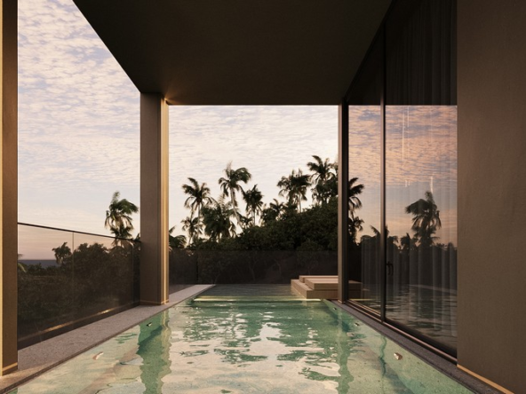 Bingin Elements stands out with clean modern-constructivist architecture, expansive panoramic glazing and a design that opens directly to dramatic island, ocean and sunset views. These 3-bedroom villas are conceived for elevated indoor-outdoor living, with a private infinity pool, sun deck, terrace and dedicated areas for entertaining, fitness or quiet reset.