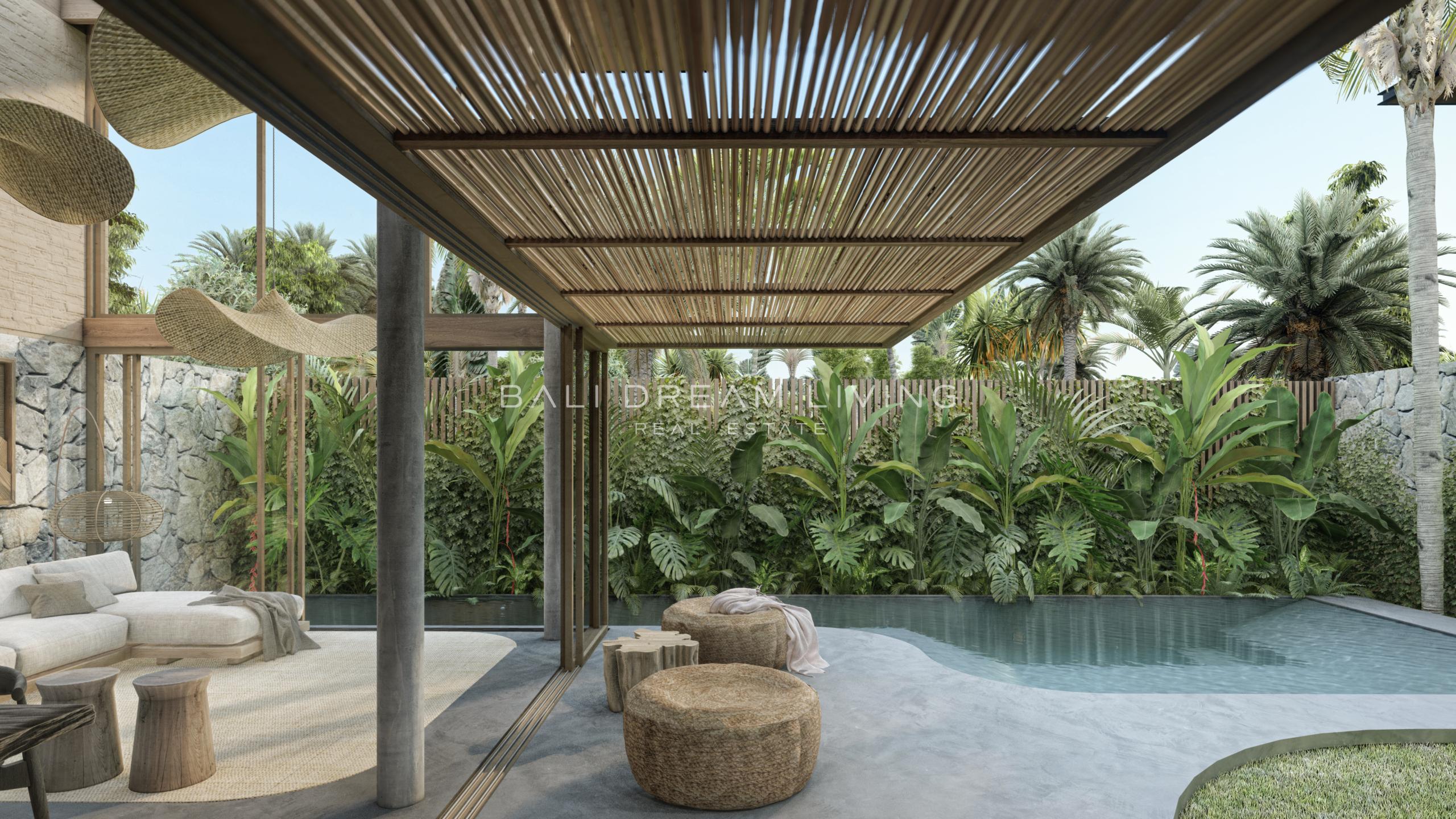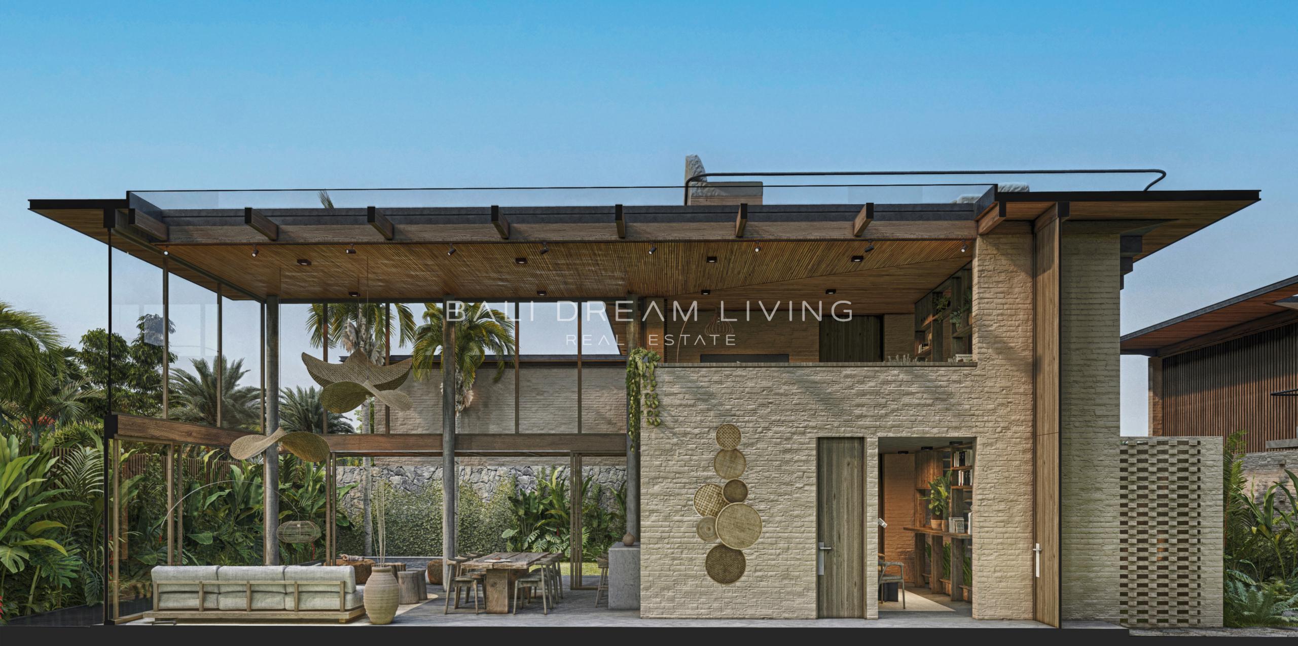 Defined by its rooftop terrace with sweeping sea views, beach-style swimming pool, and dramatic double-height living space, this modern tropical villa offers a more elevated experience than a typical turnkey home. Natural materials, landscaped greenery, and custom solid-wood furnishings bring warmth and character, while the open-plan design creates an effortless connection between indoor comfort and outdoor living.