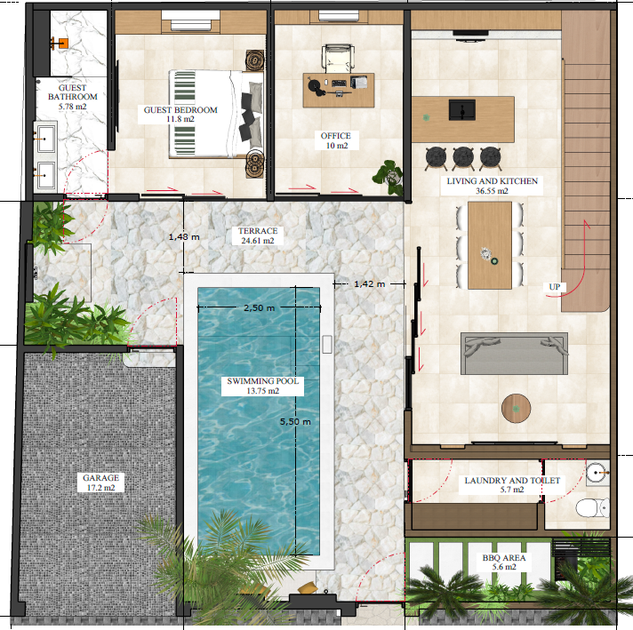 Situated just minutes from some of the Bukit Peninsula’s most celebrated destinations—5 minutes to Balangan Beach, 7 minutes to Dreamland, and 10 minutes to Bingin—this home is ideally placed for beach lovers, surfers, and wellness enthusiasts. World-class facilities including New Kuta Golf, padel clubs, spas, gyms, and an array of cafés and restaurants are all within a few minutes’ reach, making this one of the most convenient and desirable addresses in South Bali.