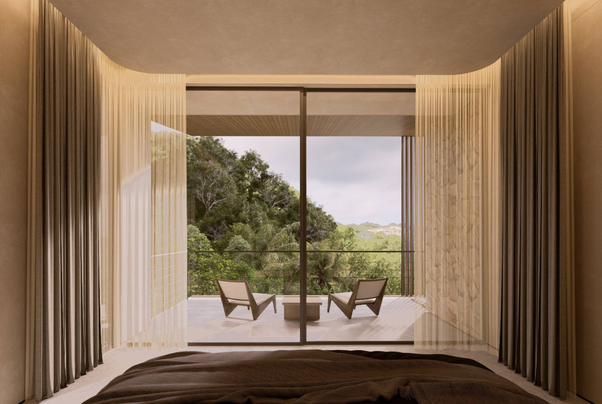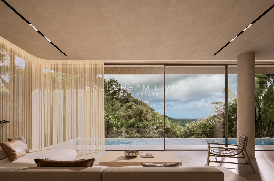 Positioned along a secluded ridgeline in Bingin Hills, these three-bedroom villas redefine modern tropical living with uninterrupted ocean views and a deep connection to nature. Elevated above the jungle canopy, each home is architecturally refined—bold in its minimalism yet welcoming in its warmth.