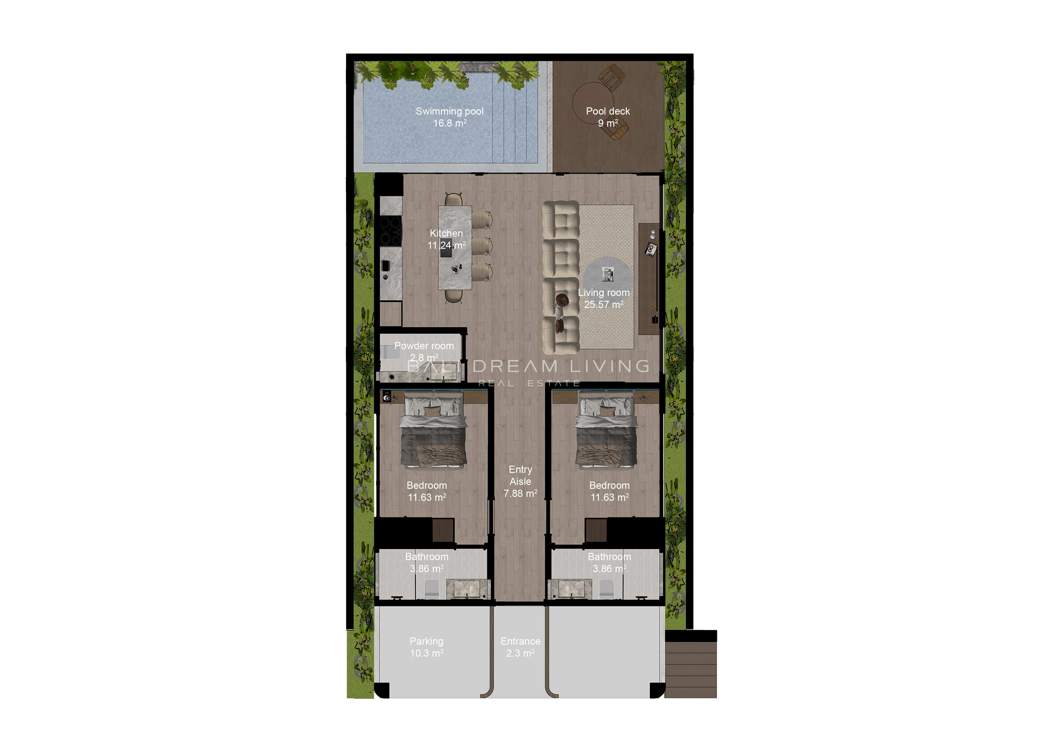 Experience the epitome of contemporary elegance at this four-bedroom villa. Designed for those who seek the ultimate in luxury, this home features two opulent master suites with en-suite bathrooms and two additional well-appointed bedrooms, ensuring comfort for family and guests alike.