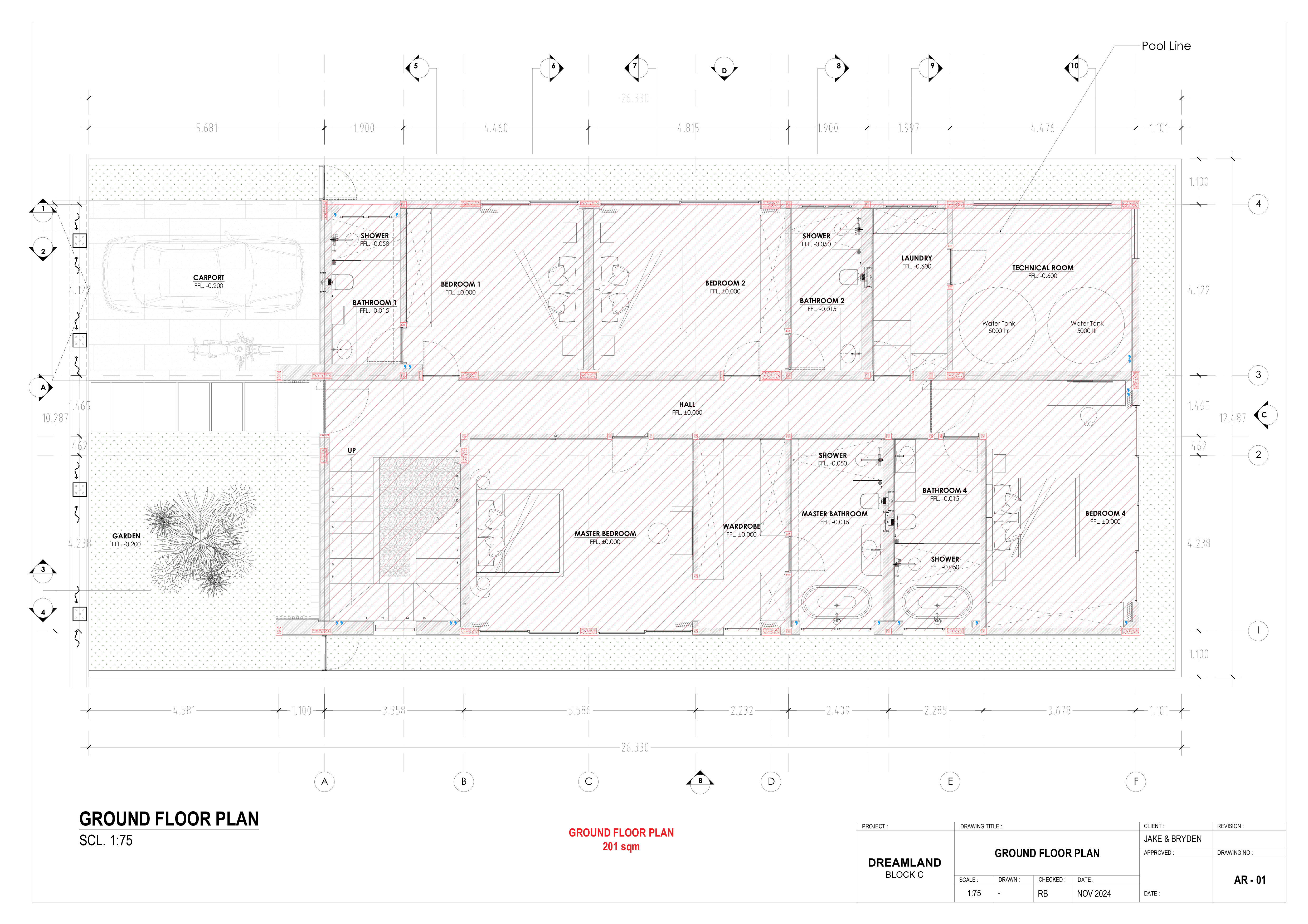 The villa is a sanctuary of luxury and style, situated on a generous 340-square-meter plot and designed to embody a seamless flow between indoor and outdoor living. The villa spans two levels, featuring four master bedrooms, each equipped with elegant ensuite bathrooms and bespoke wardrobes. Expansive living spaces exude warmth and sophistication, opening onto an infinity pool that mirrors the endless horizon. The property also includes a spacious entertainment area, a guest bathroom, and a self-contained laundry, ensuring both comfort and convenience.